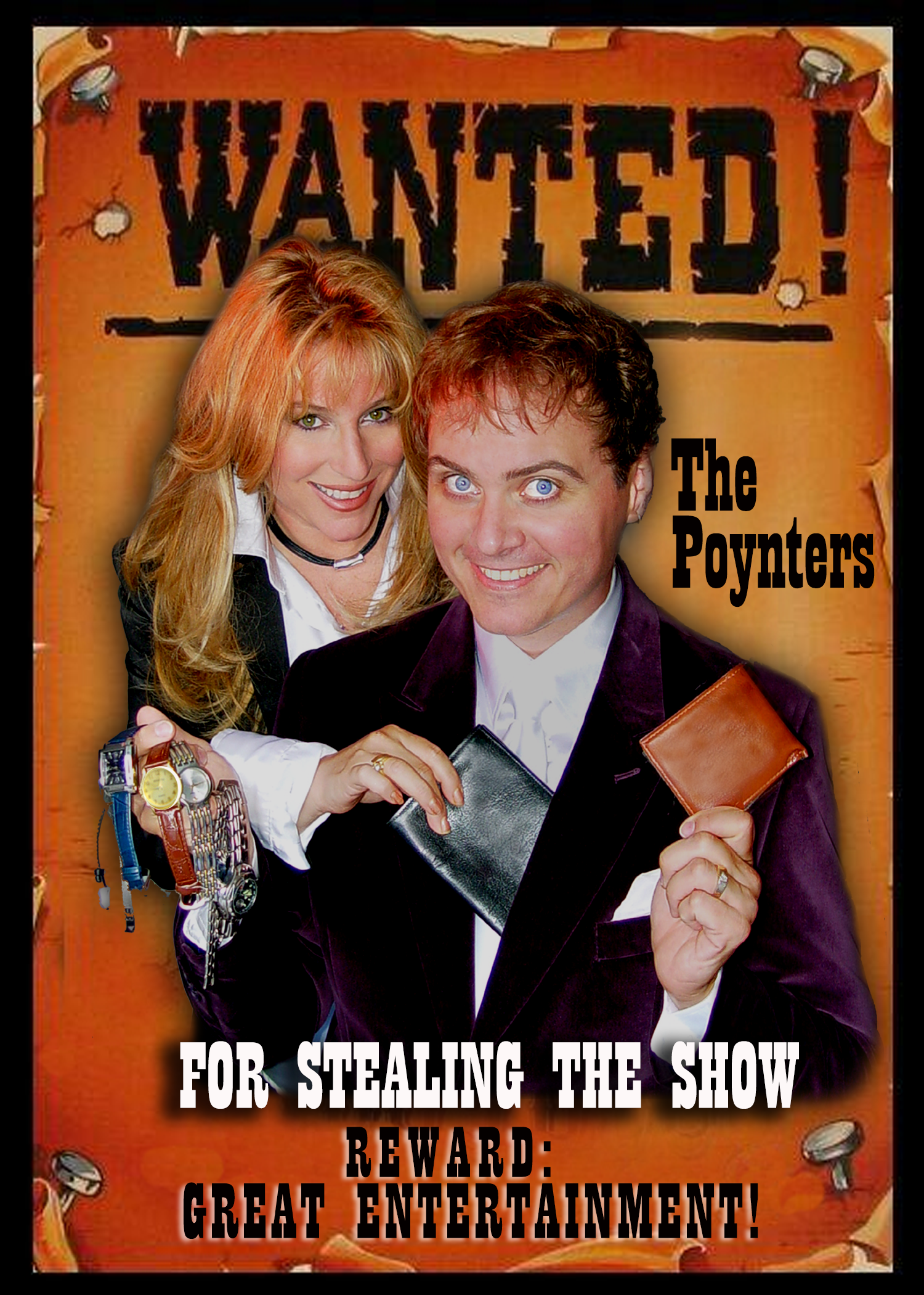 The husband and wife team of Poynter & Poynter, both ACTRA members have performed on various TV shows and were featured in a Barbra Streisand-produced movie starring Daryl Hanna for HBO and SHOWTIME. A full-scale Vegas styled review called "Simply Magic" was produced around Ken and Barbi which toured for a year. You may have experienced The Poynter's at a Club Med or in any of some thirty eight cities throughout the world or aboard one of several cruise ships in the Mediterranean and Caribbean. Then again, it may have been at Ontario Place, The CNE, Toronto's "A Little Night's Magic" dinner theatre or various Canadian resorts and theatres. Or perhaps you were mesmerized by Ken's dexterity during one of their convention or corporate appearances for numerous Fortune 500 companies. If so, you know that they combine their finely honed skills as magicians, illusionists, and masters of escape with a natural flair for balancing drama and humour. For audiences that enjoy a hilarious, highly skilled, well-choreographed performance, being entertained by